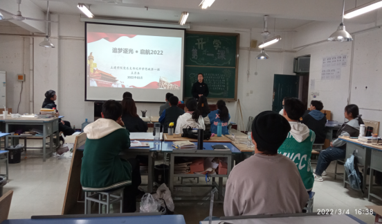 党总支书记王月本以《追梦逐光 启航2022》为题为建筑学2021级员工上开学第一课